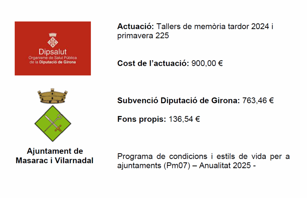 Programa de condicions i estils de vida per a ajuntaments (Pm07), anualitat 2025. Per l’actuació de tallers de memòria tardor 2024 i primavera 2025.
